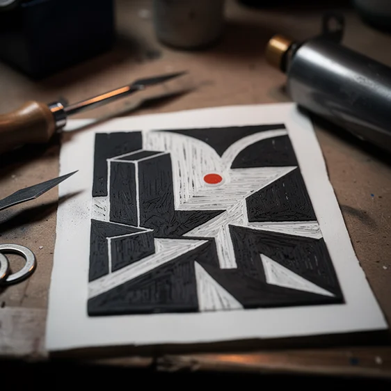 À travers la gravure et l’impression artisanale, il explore une esthétique volontairement brute et essentielle. Les compositions jouent sur des géométries franches, des contrastes marqués et une économie de couleur qui laisse toute sa place au rythme et à la structure. Le geste reste visible, assumé, révélant le processus autant que le résultat.
